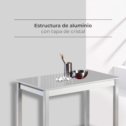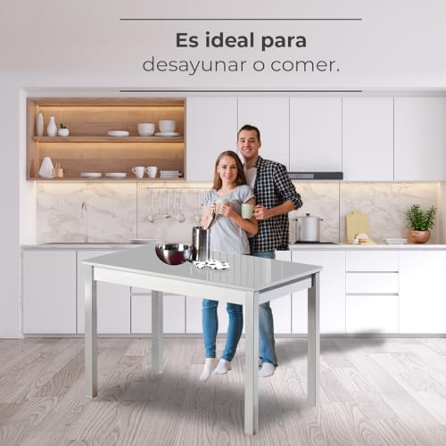 ASTIMESA Mesa de Cocina Fija de 90×50 con Tapa de Cristal Gris