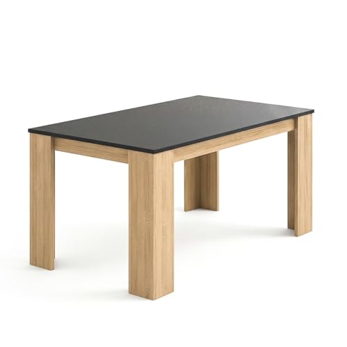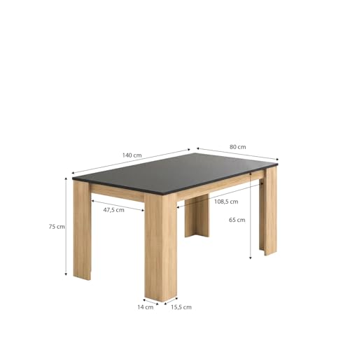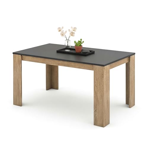 duehome | Mesa de Comedor, Mesa Fija, Modelo Naya, Acabado en Roble Canadian y Grafito, Medidas: 140 cm (Largo) x 80 cm (Ancho) x 75 cm (Alto)