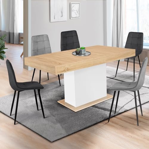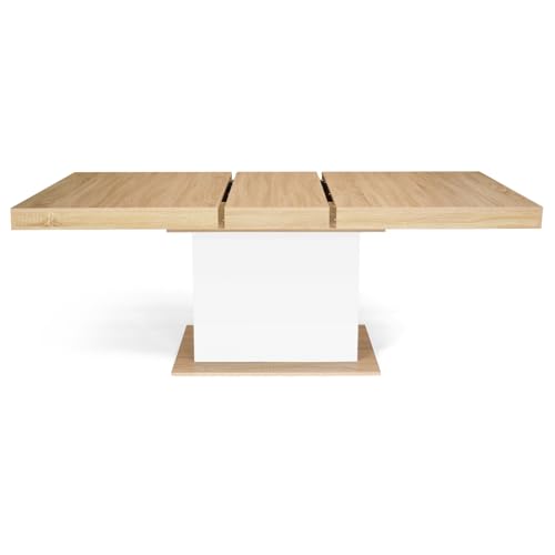 La mesa de comedor extensible EDEN 160-200 cm de madera y blanco es ideal para espacios grandes