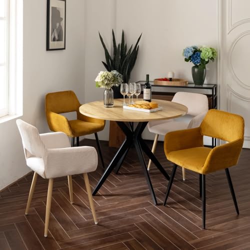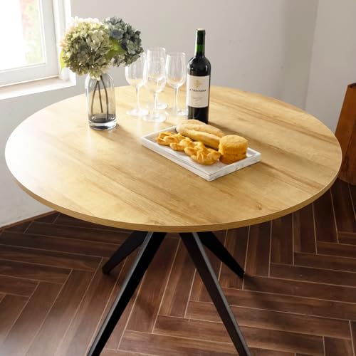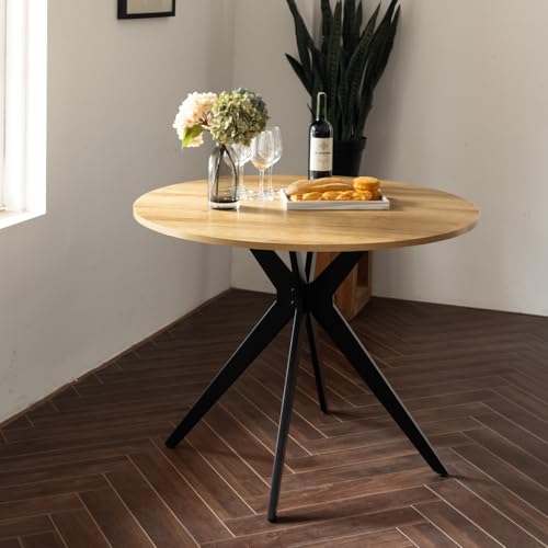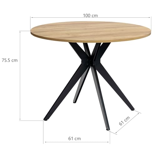MEUBLE COSY Mesa de Comedor Redonda Retro 4 Personas para Salón Cocina Oficina, Madera de Ingeniería y Metal, Roble + Negro, 100x100x75cm