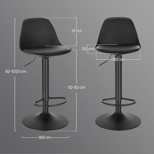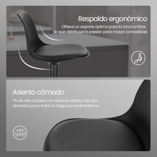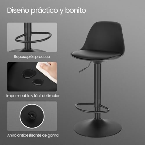 EUGAD Juego de 2X Taburete de Bar Giratorio, con Altura Ajustable Entre 60,5 y 82 cm, Taburete de Cocina, Estructura Metal, con Respaldo y Reposapies, 0651BY-2