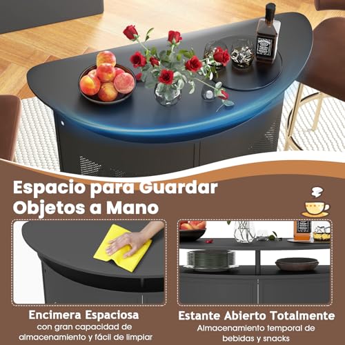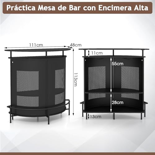 Encimera Curva y Reposapiés Integrado: Con una altura ideal de 112,5 cm, la suave encimera curva crea un área de bar estilosa y acogedora para disfrutar de bebidas y charlas. El reposapiés integrado ofrece comodidad y soporte adicionales mientras disfruta de sus bebidas favoritas.