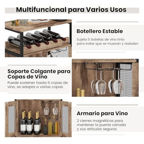 Multifuncional para Varios Usos: El mueble de bar vintage encaja bien con diferentes decoraciones del hogar. Perfecto para un mueble de bar, mesa de botellero, estantería de cocina, licorera, mesa de buffet, organizador de almacenamiento de bebidas, soporte de exhibición, mesa de consola, incluso una estantería para la oficina en casa, etc.