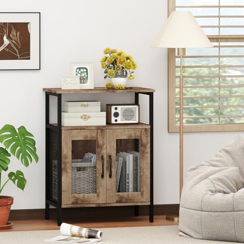 Amplio Espacio de Almacenamiento Clasificado: El aparador pequeño cuenta con suficiente espacio de almacenamiento, incluyendo un tablero de la mesa del gabinete, un estante del vino medio, gabinete inferior y soporte de vidrio. El mueble de bar está diseñado para la organización clasificada y acomoda vino tinto, botella de vino, vajilla, utensilios de cocina, sustento y decoraciones para mantener su artículo bien organizado.
