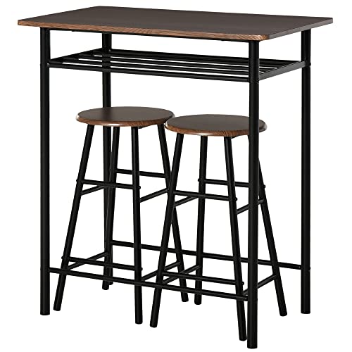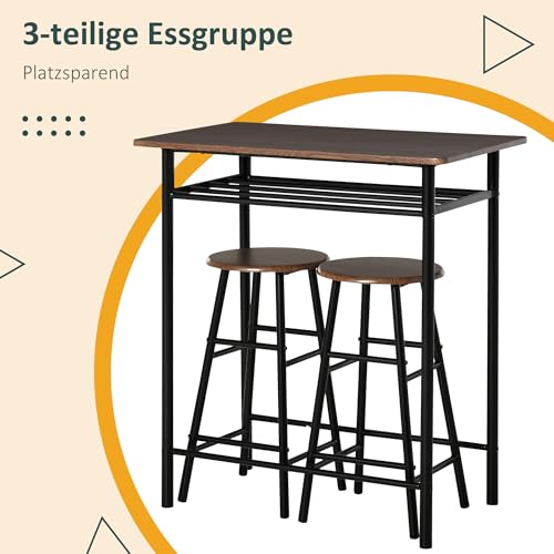 Juego de mesa de bar de 3 piezas, mesa de comedor con 2 taburetes de bar, mesa y sillas de cocina, mesa alta y taburete de bar con estante de almacenamiento, metal, 80 x 50 x 90 cm, color negro