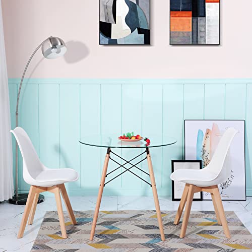 EGGREE Pack de 2 Sillas de Comedor Sillas Cocina Nórdico con Asiento Tapizado y Las piernas de Madera de Haya Maciza – Blanco