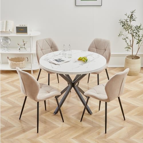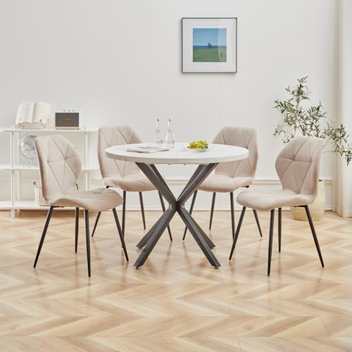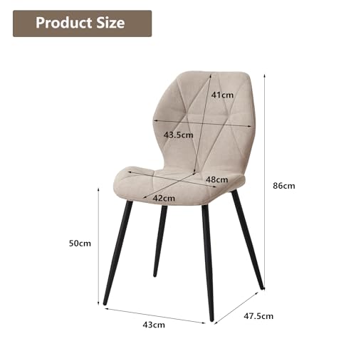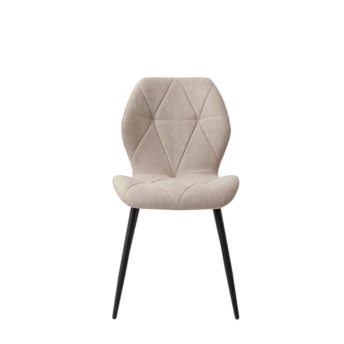 GrandCA HOME Juego de 4 Sillas de Comedor, Sillas de Comedor Tapizadas, Sillas de Cocina Nórdicas, Sillas Acolchadas con Patas de Metal, Cojines de Tela de Rombos, Beige-R