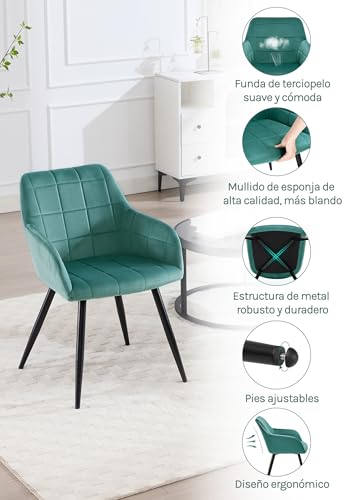 DISEÑO ERGOMÓNICO: La silla de comedor con respaldo curvado y reposabrazos ofrece un óptimo apoyo lumbar, mientras que la suave tapicería de terciopelo y el grueso acolchado proporcionan un agradable confort durante largas horas sentado