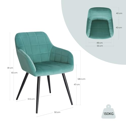WOLTU 1 x Silla de Comedor Nordica Estilo Vintage, con Reposabrazos Tapizada en Terciopelo, Estructura de Metal, Turquesa BH93ts-1