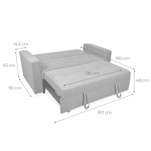 🛋️Dimensiones: 167cm (Largo) x 90cm (Fondo) x 96,5cm (Alto). Transforma tu hogar con nuestro sofá cama, un equilibrio perfecto entre modernidad y elegancia que elevará el estilo de cualquier espacio