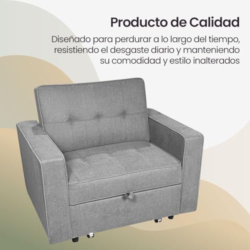 Homey – Sofá Cama de 2 Plazas Modelo Aron, Diseño Moderno, Práctico y Funcional, con Reposabrazos, Gris