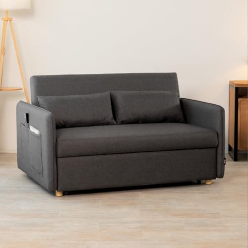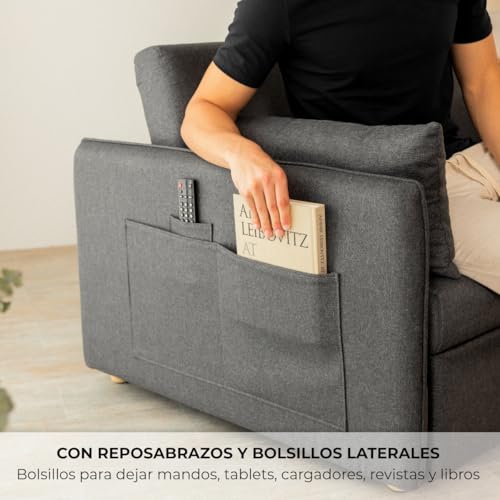 Nalui- Sofa Cama 2 plazas 3 en 1 Nest 2 139x100x80cm con Respaldo Ajustable y 2 Almohadas. Sofa Cama Chaise Longue, Soporta hasta 240Kg. Sofa 2 Plazas Convertible en Cama 120x190cm, Gris Oscuro