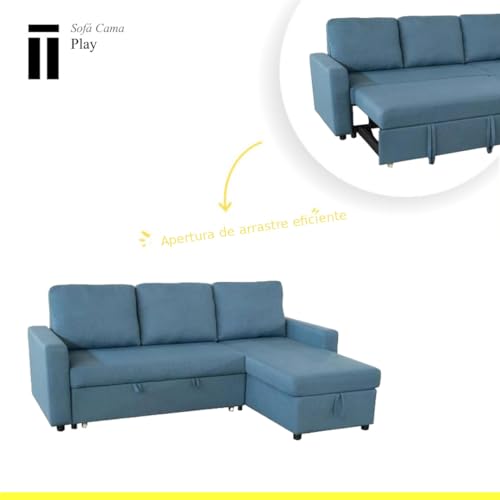 SHIITO | Modelo Play – Sofá 3 Plazas con Chaiselongue y Arcón | Máximo Relax y Confort | 230 x 84 x 96 cm – Color Azul