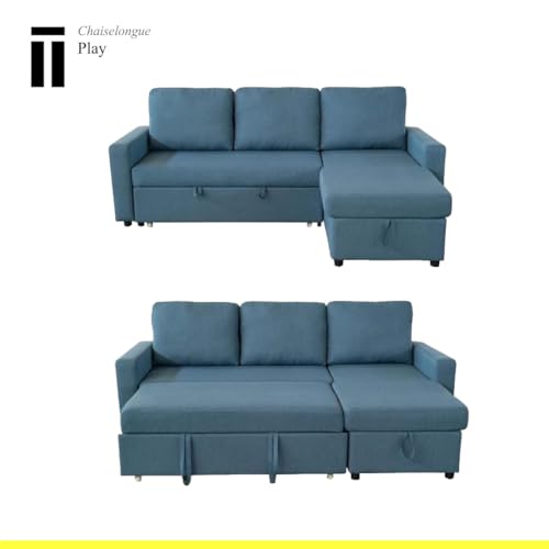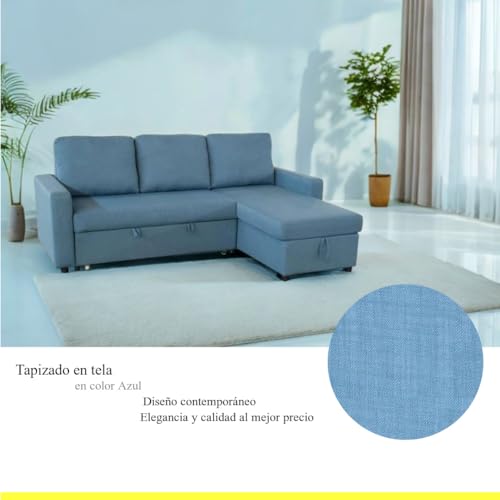 ESTILO Y FUNCIONALIDAD: Este sofá cama chaiselongue está diseñado pensando en la funcionalidad. Incluye un amplio arcón de almacenamiento bajo la chaise longue para mantener tu espacio ordenado. Además, está disponible en tres colores: gris claro, beige y azul. Puedes elegir el tono que mejor se adapte a tu estilo y decoración.
