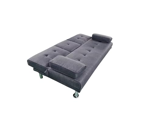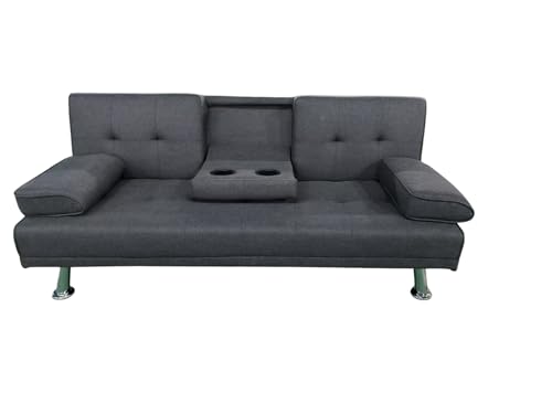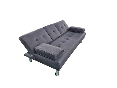 Sofa Cama Canos 3 Plazas, Sillón Cama, Cama Sofa, con Mesa Abatible, Tapizado Tela Sintética, Apertura Clic-Clac, Sofa de Diseño, Color Gris