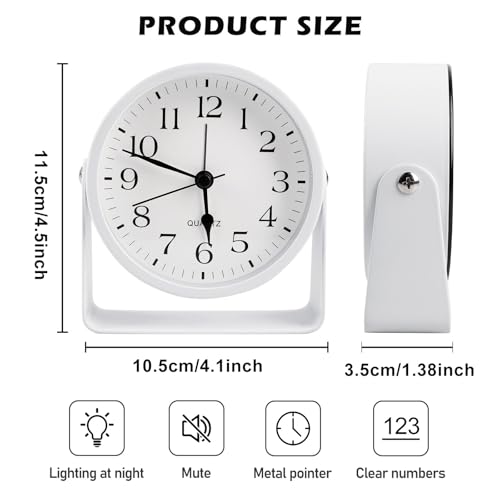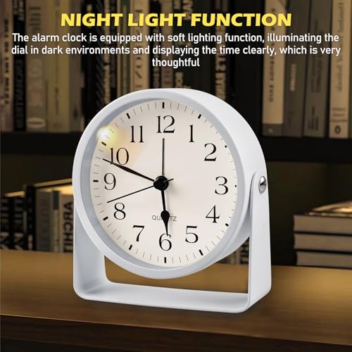Giratorio: el despertador analógico sin tictac tiene un diseño giratorio y se puede girar hacia adelante y hacia atrás en varios ángulos. El reloj de mesa analógico es perfecto para decorar tu escritorio, mesita de noche y más