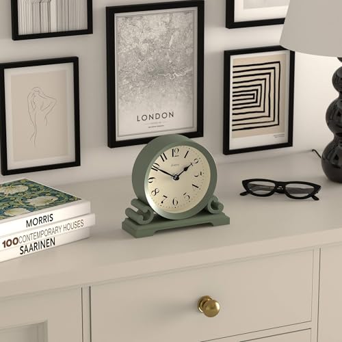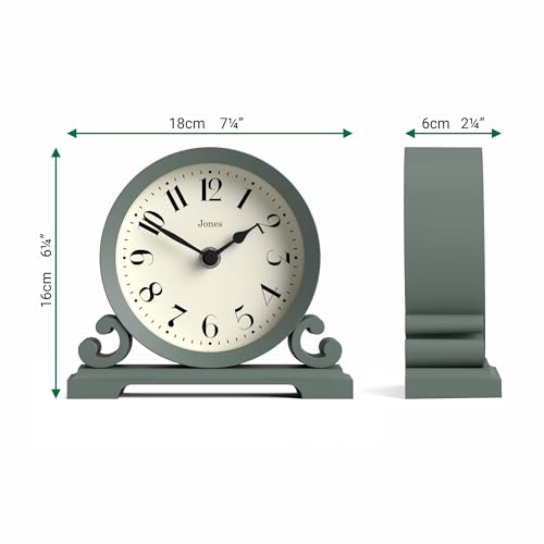 JONES CLOCKS® Saloon Reloj de repisa | Diseño Tradicional de Doble Desplazamiento | Verde | Estilo clásico contemporáneo para Escritorio, Mesa, estantería o mesita de Noche