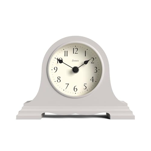 JONES CLOCKS® Speakeasy Reloj de repisa | Diseño clásico de Sombrero de napoleón | Gris | Estilo clásico contemporáneo para Escritorio, Mesa, estantería o mesita de Noche
