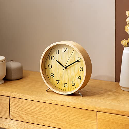 Navaris Reloj de Mesa analógico – Reloj clásico de Madera 21 CM – Decorativo para mesilla de Noche salón – Diseño tictac sin Ruido – Marrón Claro