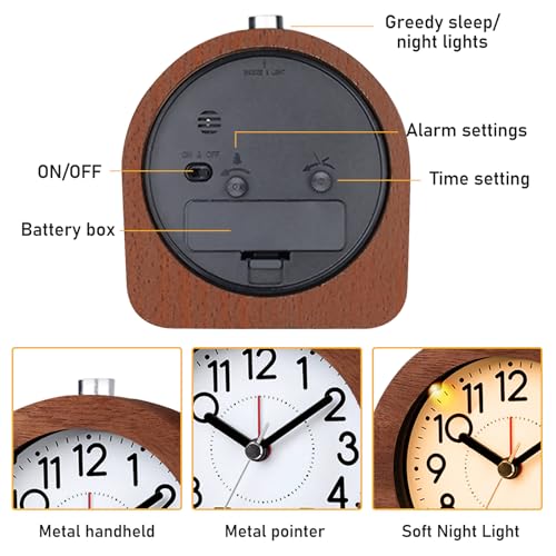 Carcasa de madera: este despertador analógico sin tictac está hecho de madera, despertador analógico sin tictac, duradero y de alta calidad. Despertador analógico sin tictac, es fácil de limpiar y mantener. Despertador analógico sin tictac, los colores son vivos y la superficie es lisa