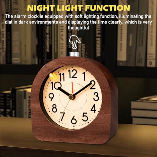 Despertador analógico de madera, despertador analógico sin tictac, despertador digital, mesita de noche, reloj de mesa con luz nocturna, despertador analógico de madera, funciona con pilas, para dormitorio, hogar, oficina, viajes, escritorio