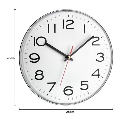 Grande: esfera grande y fácil de leer del reloj de pared analógico con 28 cm de diámetro, también se puede leer a distancia gracias a los números negros y a la segunda mano roja