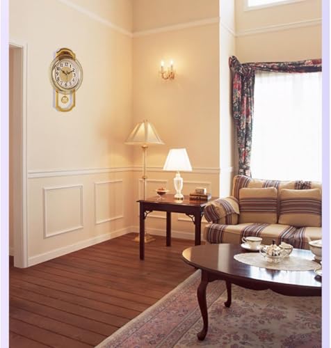 Europeo Reloj de Pared,Silencioso sin Ruidos Creativo Sala de Estar Dormitorio Retro Swing Cuarzo Reloj de Pared-C 43 * 27cm